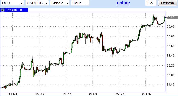 Т.е. на то, чтобы удержать курс рубль на 1 день, пришлось потратить весь отпущенный на это лимит в 350 миллионов долларов. Истратили - снова подняли границы коридора. Теперь снова тратят.